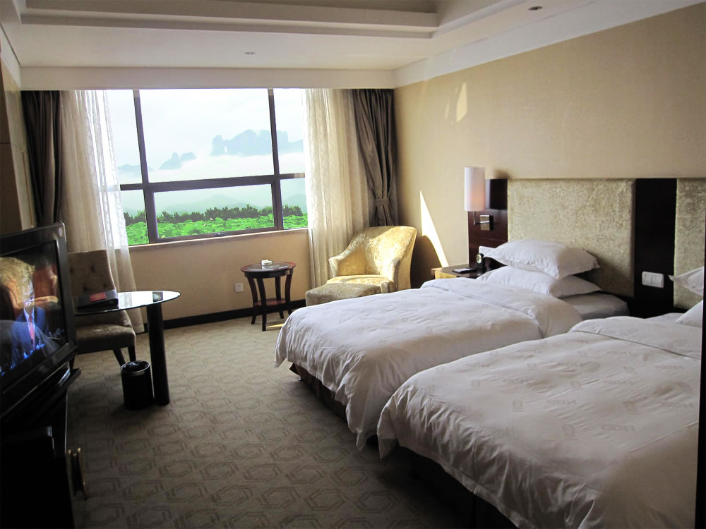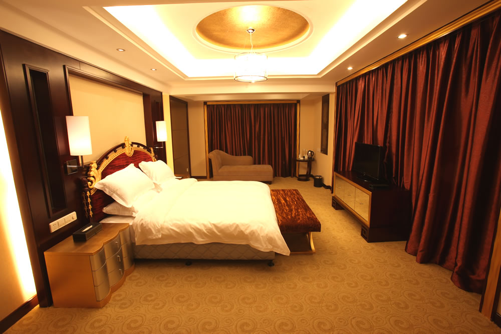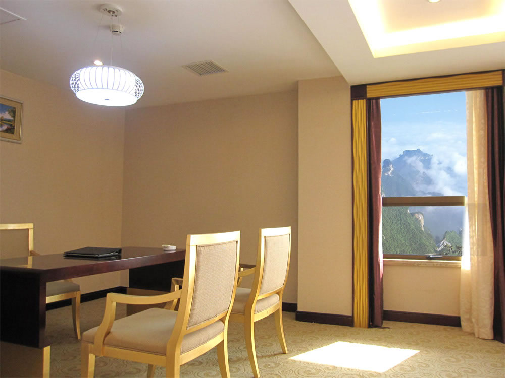 【豪華客房】(3—16 樓)):擁有各類(lèi)豪華客房共380間/套,其中頂樓為皇室套房,有空中花園,可遠(yuǎn)觀天門(mén)山景區(qū)。