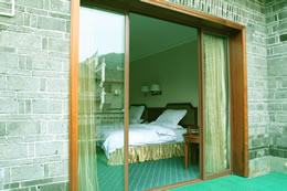 鳳凰江天旅游度假村位于湘西自治州鳳凰縣古城區(qū)內(nèi),東鄰虹橋路交通方便,南有清澈的沱江自西向東川流不息,東南角緊靠蜚聲海內(nèi)外的風(fēng)雨樓——虹橋,與風(fēng)姿綽綽的吊腳樓群隔江相望,是鳳凰古城控制區(qū)內(nèi)唯一按準(zhǔn)四星級標(biāo)準(zhǔn)建造的、具有仿古建筑特色和現(xiàn)代化室內(nèi)裝修的、集休閑、購物、度假、商務(wù)于一體的旅游度假村。 鳳凰江天旅游度假村主體酒店客房部均為三層仿古建筑,形成以別致的個性小花園為中心的主樓區(qū)和副樓區(qū),目前擁有各種客房110余間,分為:帶觀景陽臺、配備高檔液晶電腦、獨立寬帶上網(wǎng)的商務(wù)房,帶客廳、廚房和露臺花園的豪華套房,以及豪華標(biāo)準(zhǔn)房,所有客房提供免費寬帶接口。同時擁有可容納400人同時用餐的具有民族特色的大型餐廳,大、小會議室和近80個車位的停車場,商業(yè)走廊可讓您盡情享受各種民族特色的服飾與小吃,整個度假村與鳳凰古城融為一體,是您休閑度假、商務(wù)旅游的最佳場所,更是您與古城親密接觸的理想平臺。 |