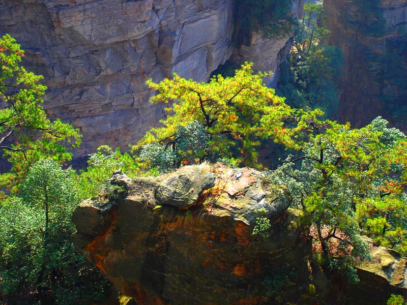 | 袁家界位于張家界國家森林公園北面,是一方山臺地。背依巖峰山巒,面臨幽谷群峰,自東向西延伸。主要景點有后花園、迷魂臺、天下第一橋等。