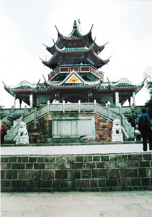 六奇閣是一幢塔狀的樓臺(tái),座落在黃石寨的最高處。它是自然景觀群體唯一的一處人文景觀,突兀在石砌的方臺(tái)基上。湘潭大學(xué)教授羊春秋老先生于此撰聯(lián)曰:名動(dòng)全球,到此真堪三擊節(jié);勢(shì)拔五岳,歸來不用再看山。
