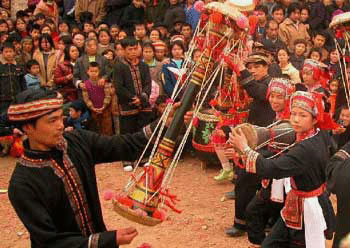 仗鼓舞是白族的一種獨特舞蹈,尤其是張家界天子山一帶的白族人,大都愛跳仗鼓舞。逢年過節(jié)、游神、趕會,山山寨寨都要舉行歡樂的“跳舞節(jié)”。仗鼓舞根據(jù)人數(shù)多少,分為4人舞、8人舞、32人舞等多種形式,主要道具是仗鼓,鼓長1.2米,兩頭粗,中間細(xì),因兩頭緊繃牛皮,敲擊時便“嘭嘭”作響。跳舞前須祭祀祖先,然后由三位德高望重的老者先入場引導(dǎo)圍圈歡跳,擺呵、蹬呵、拍呵,繞著場子一圈又一圈地跳,鼓聲陣陣,還有嗩吶、笛子等樂器伴奏,舞姿靈活多變,古樸大方,驚險敏捷,民族色彩濃郁。