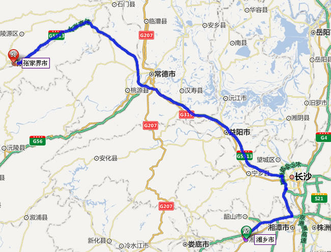 湘鄉(xiāng)市到張家界自駕車路線圖