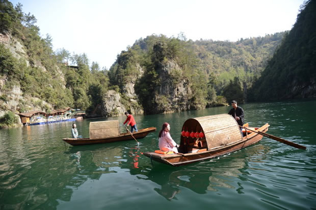 “在高峽平湖中,我們看到了張家界山水的純凈,也感受了這里人文的多彩。”一批來自泰國的華裔游客當(dāng)天游覽景區(qū)后開心地說。在他們眼中,寶峰湖的春天風(fēng)景獨好,四周山巒山花競放,五顏六色絢麗無比,就連湖面倒影也十分迷人。而導(dǎo)游員熱情洋溢的講解和山歌船飛出的原生態(tài)民歌,以及烏篷船上身著民族服裝的阿哥阿妹,都是他們張家界之旅不容錯過的人文風(fēng)景。