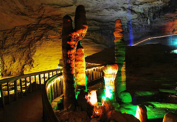上 午:早餐后旅游車前往地下明珠——【黃龍洞景區(qū)】(門票100元/人已含,游覽時(shí)約2.5小時(shí)):黃龍洞享有“世界溶洞全能冠軍”之美譽(yù),2005年被評選為“中國最美的旅游溶洞”,洞中燈火闌珊、石筍林立,猶如一株株古木錯(cuò)節(jié)盤根、洞中有洞、洞中有河、無奇不有,真乃名副其實(shí)的“地下魔宮”,洞中還有投保一億元的石筍定海神針、響水河、龍王聚會(huì)廳、天仙水、天柱街等著名景點(diǎn)。