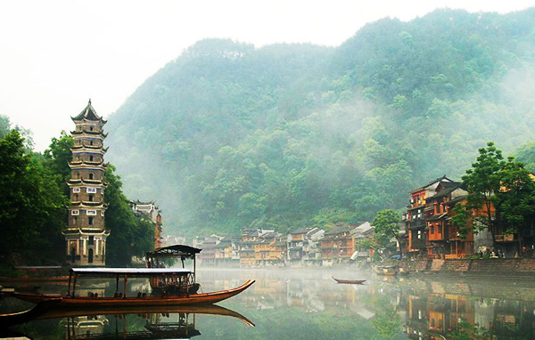 鳳凰古城是國家歷史文化名城,曾被新西蘭著名作家路易艾黎稱贊為中國最美麗的小城。這里與吉首的德夯苗寨,永順的猛洞河,貴州的梵凈山相毗鄰,是懷化、吉首、貴州銅仁三地之間的必經(jīng)之路。作為一座國家歷史文化名城,鳳凰的風景將自然的、人文的特質有機融合到一處,透視后的沉重感也許正是其吸引八方游人的魅力之精髓。這座曾被新西蘭作家路易艾黎稱作中國最美麗的小城之一的“鳳凰古城”建于清康熙時,這顆“湘西明珠”是名副其實的“小”,小到城內僅有一條像樣的東西大街,可它卻是一條綠色長廊。